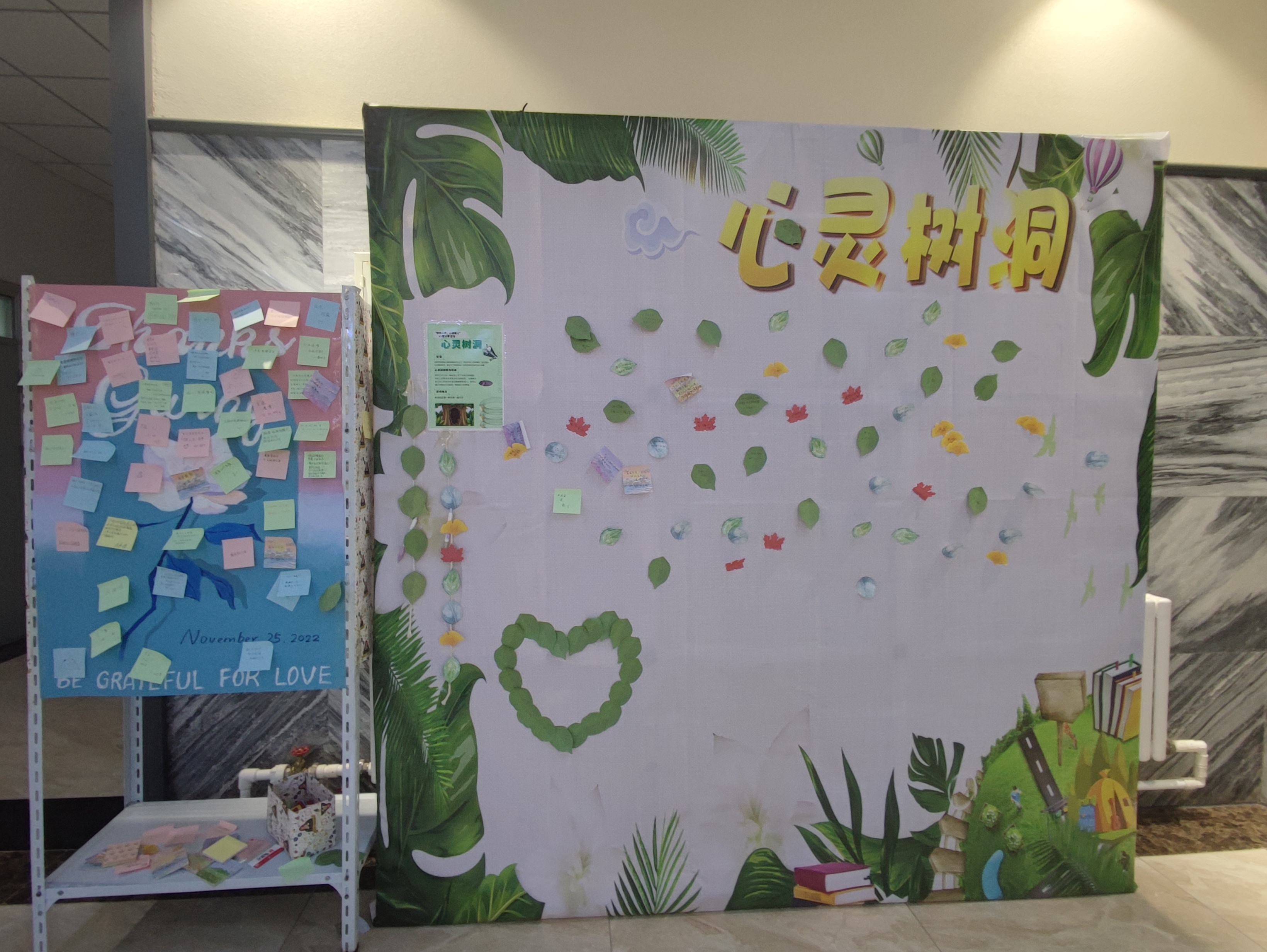 Firstly, the “Express and Listen” exchange activity was carried out. Through online and offline publicity, it guided students to moderately talk about their worries, listen to others, and try their best to solve others problems and support them. After that, students were encouraged to write down encouragement for themselves, appreciation for others, or complaints about life on the sharing tree hole arranged in the lobby of the first teaching building, using pen and paper as a medium to convey warmth and strength. Finally, a lottery was initiated among the participants, and the prizes were distributed, which fully stimulated the students’ enthusiasm.