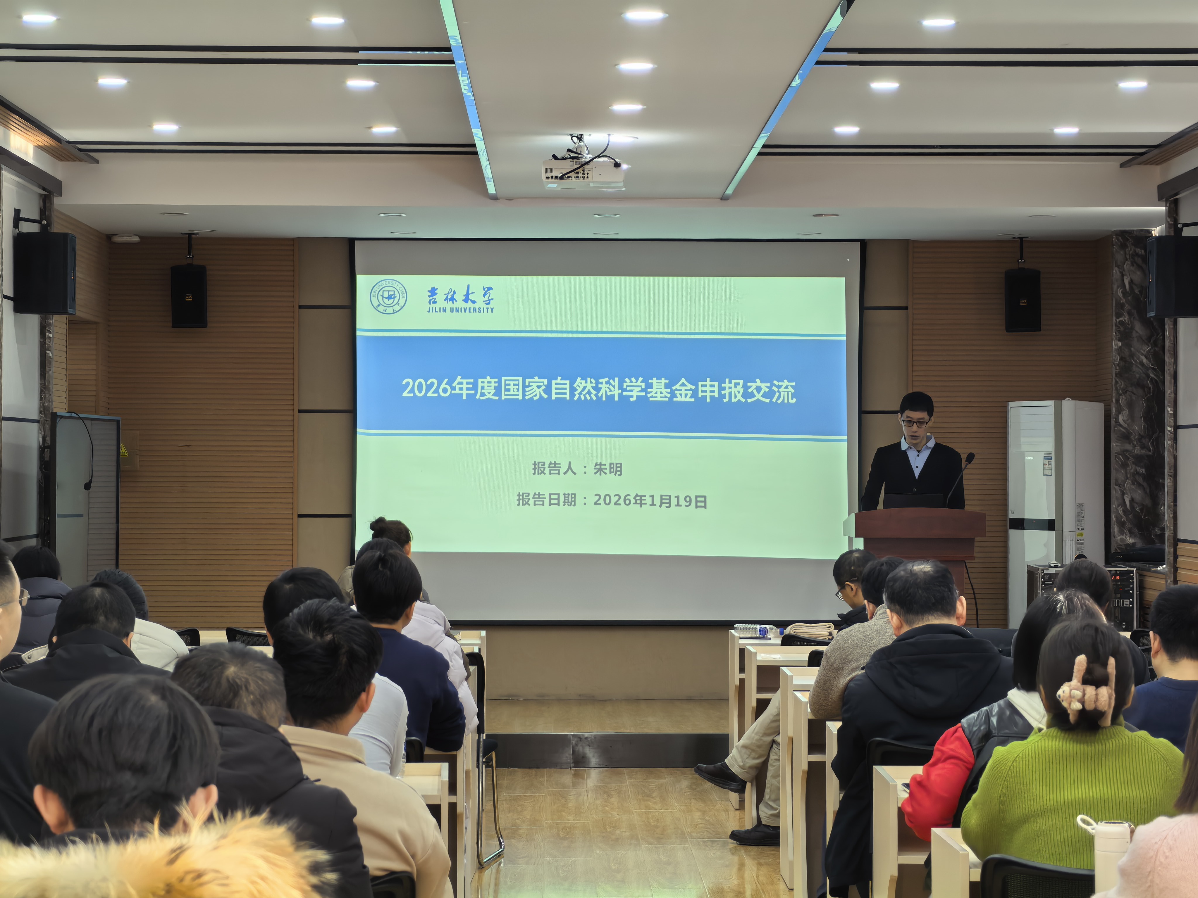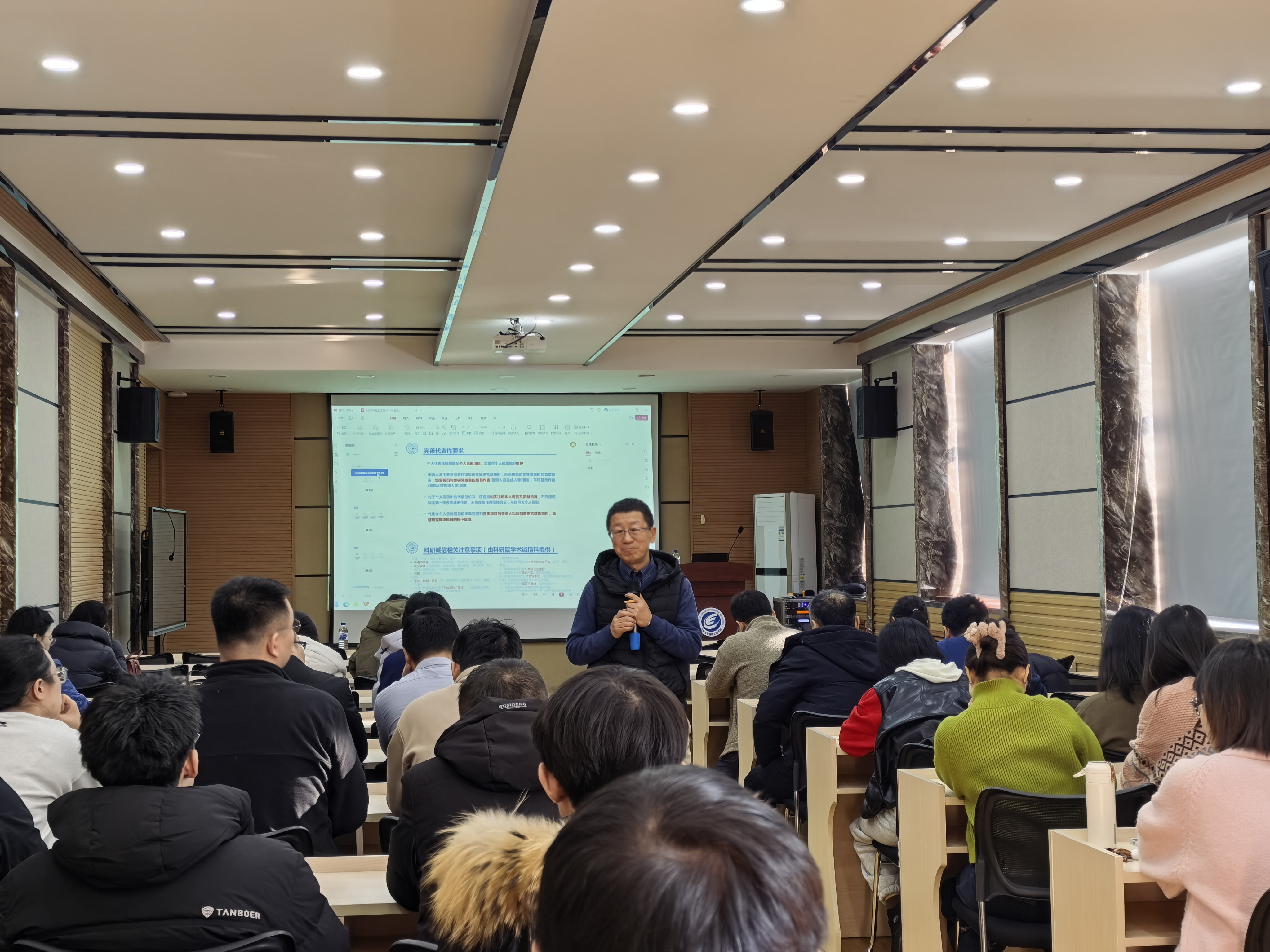 朱明老师围绕2025年度基金申报与资助情况、2026年度基金工作安排及改革要点等方面展开系统讲解。他详细分析了2025年度全国及我校基金申请与立项数据,指出我校平均资助率高于全国平均水平,尤其在青年人才项目上取得历史性突破。针对2026年度申报,朱明重点介绍了申请书结构优化、人工智能使用规范、代表作贡献填报、科研诚信自查等新要求,并对申报时间节点、材料准备、常见问题等作了细致说明。