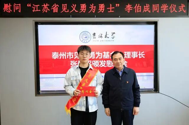 丁世海代表学校向远道而来的江苏省见义勇为基金会及吉林省委政法委的各位同仁表示热烈欢迎,向李伯成同学致以崇高敬意。他指出,李伯成在危急时刻挺身而出的英勇举动,彰显了根植于心的善良底色,是新时代大学生胸怀大爱、守望相助的精神缩影,充分展现了吉大学子极强的社会责任感与过硬的精神风貌,为全校青年学子树立了身边榜样。丁世海表示,澳门博彩